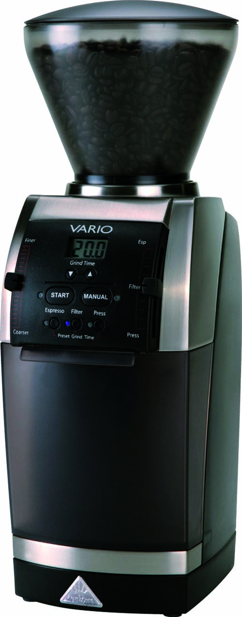 Vario är en kompakt, tyst och användarvänlig automatisk kvarn som mal bönor direkt ner i filterhandtaget. Kvarnen är enkel att justera till rätt malningsgrad och erbjuder över 200 inställningar för malning. Den har dessutom tre förinställda val för espresso, filter och pressokaffe. Vario kvarnen passar bra till våra manuella 1-gr espressomaskiner med kapacitetsbehov på ca 40-50 koppar/dag.\n\n1-fas: 200 W